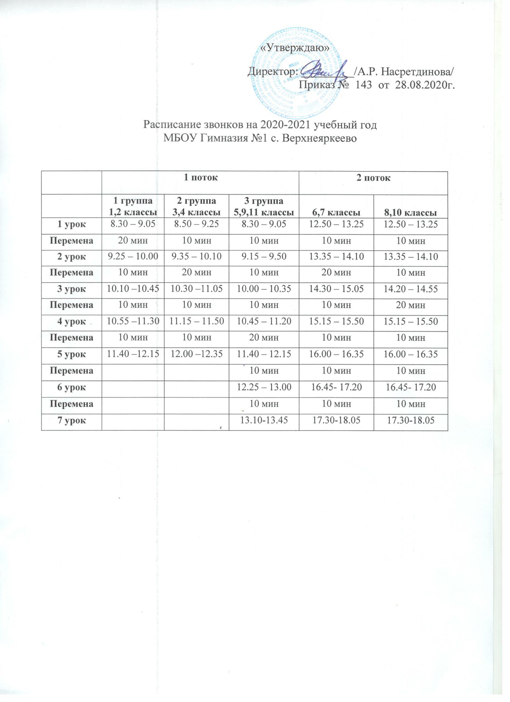 Расписание звонков