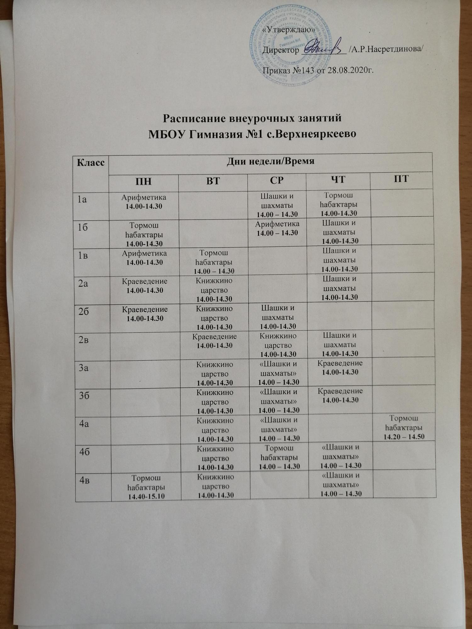 Учебный план МБОУ Гимназия №1 с.Верхнеяркеево на 2025-2026 уч.год