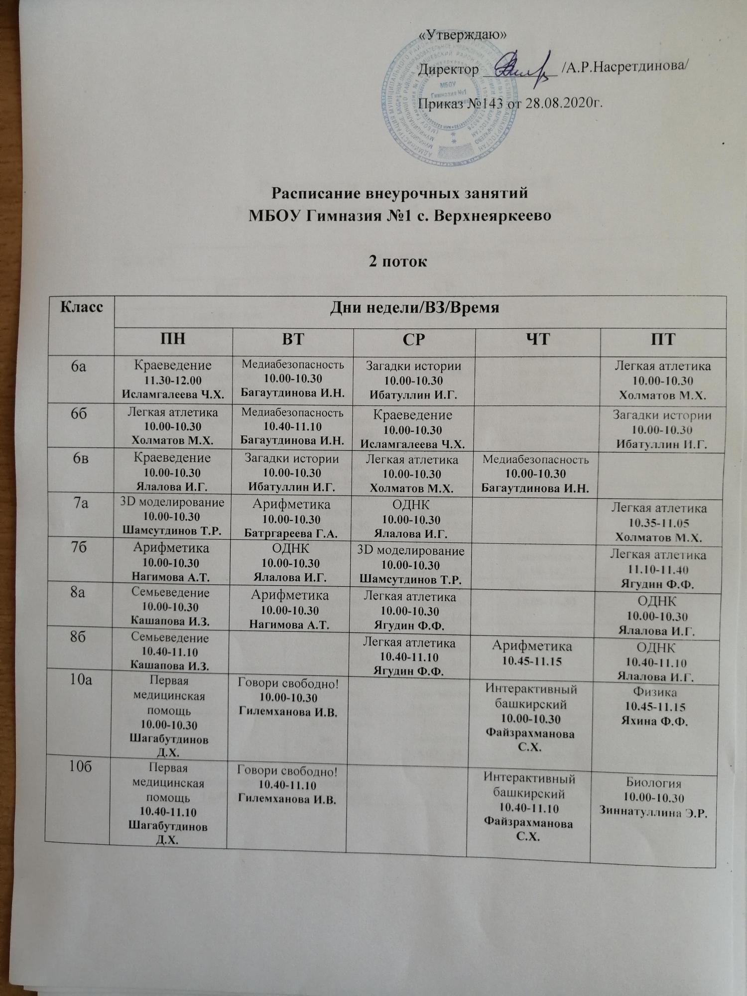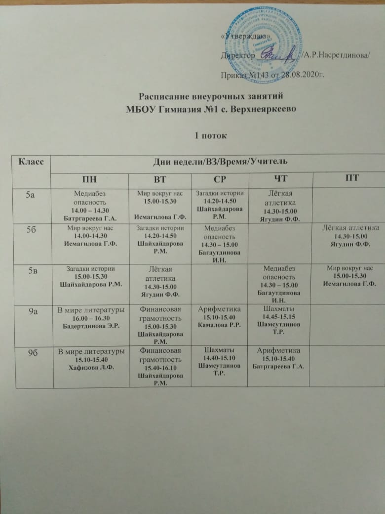 Расписание внеурочных занятий для 5 и 9 классов