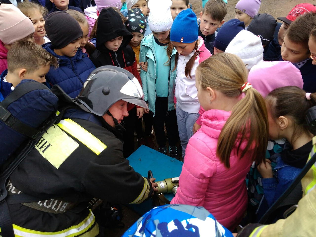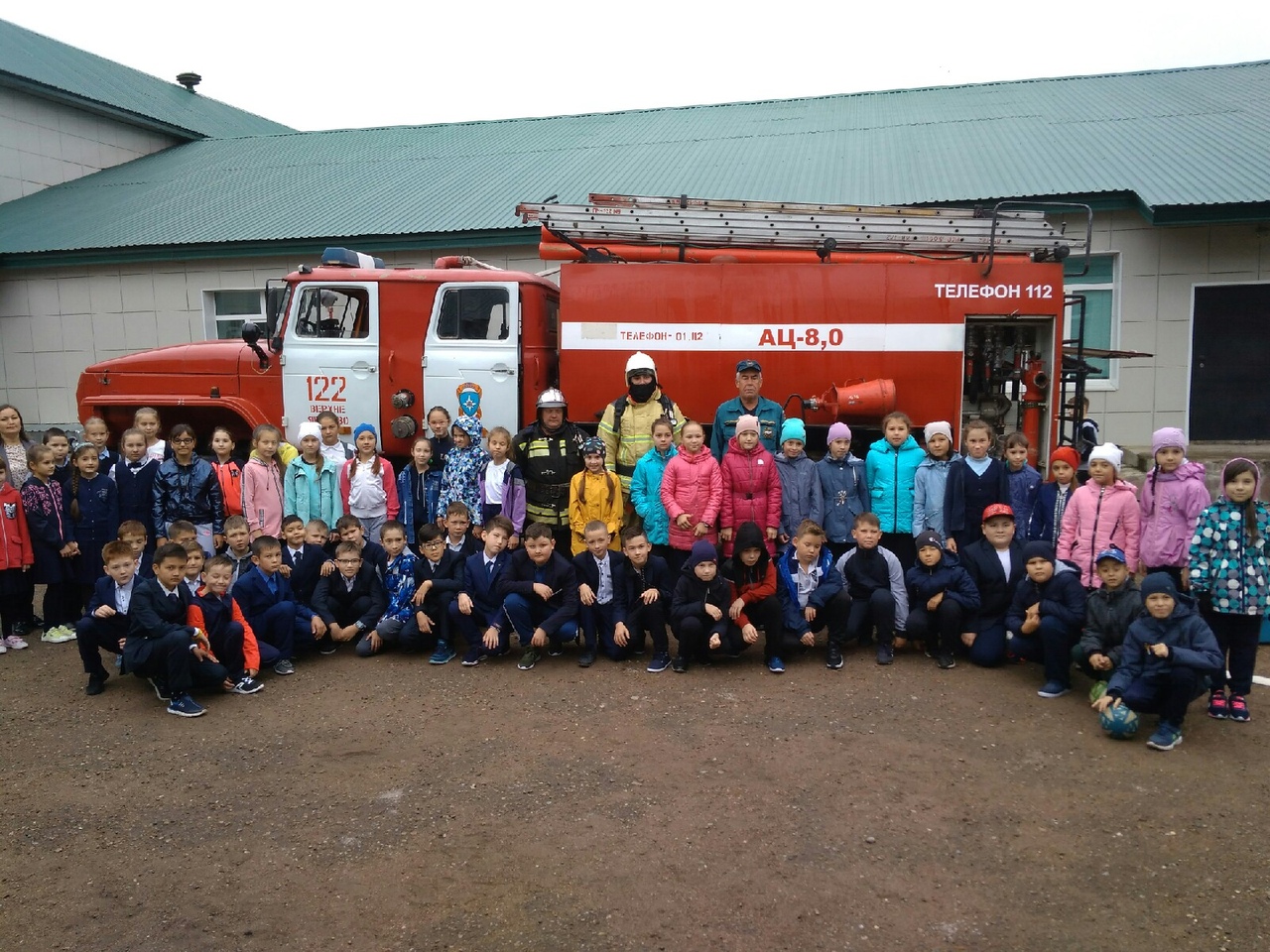Учебная эвакуация прошла успешно. Все обучающиеся эвакуировались в установленное время. После эвакуации, учитель ОБЖ Шагабутдинов Д.Х. провел беседу на линейке с обучающимися. Пожарная машина приехала через 10 минут после сигнала. Обучающимся 5 в класса пожарники показали, как работает пожарная команда при тушении пожара.