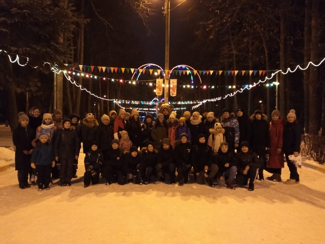 Вечером, 5 января учащиеся 7 классов вместе с родителями прогулялись в центральном парке и покатались на коньках.