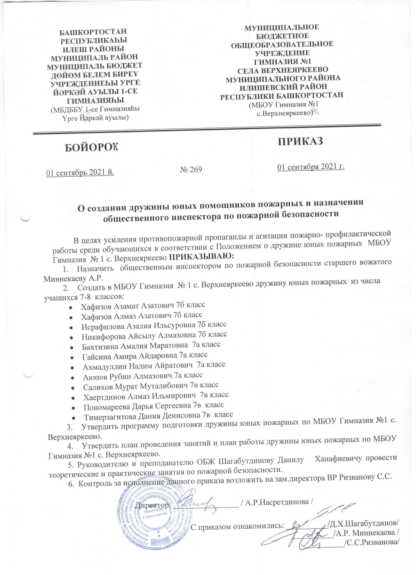 Приказ о создании дружины юных помощников